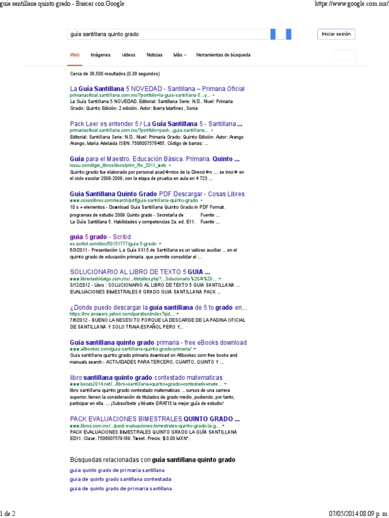 Guía Santillana Quinto Grado Respuestas / La Guía Santillana - Quinto Grado (PDF) | Libros de quinto ... : Guía santillana 4to para alumnos y maestros.